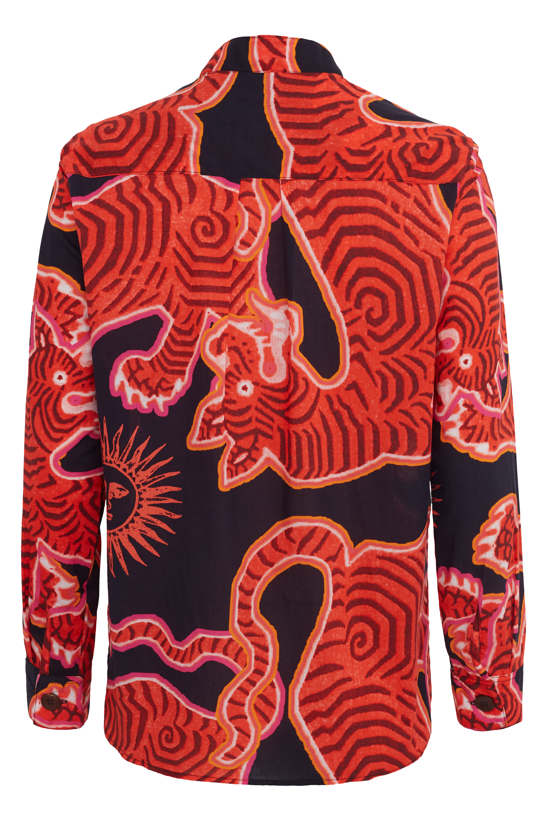 Possui um corte reto, mangas compridas e gola padre. Tecido leve e fresco em voil de algodão com toque suave ao corpo, e caimento mais amplo. Fechamento por botões de fibra de coco.