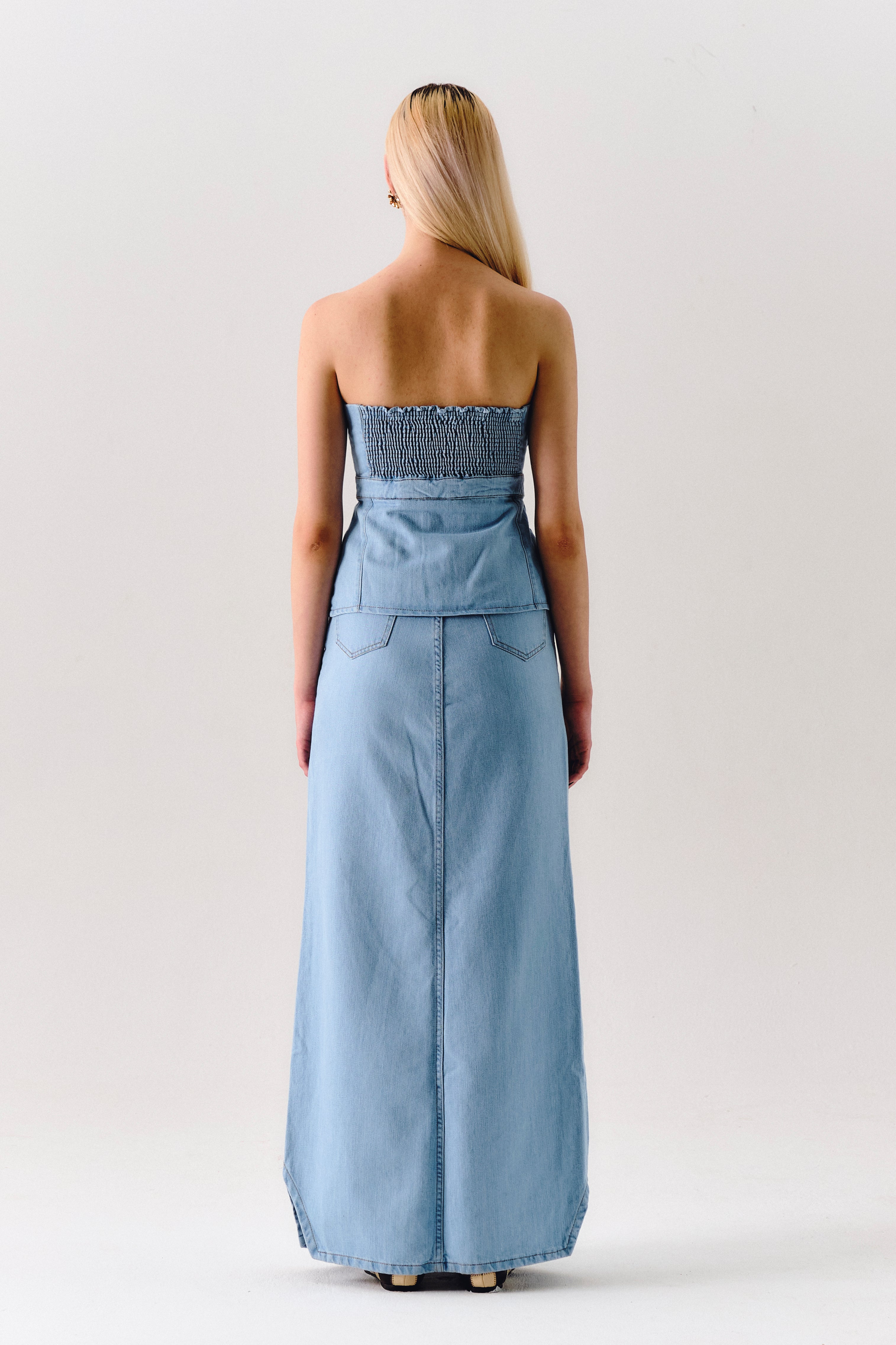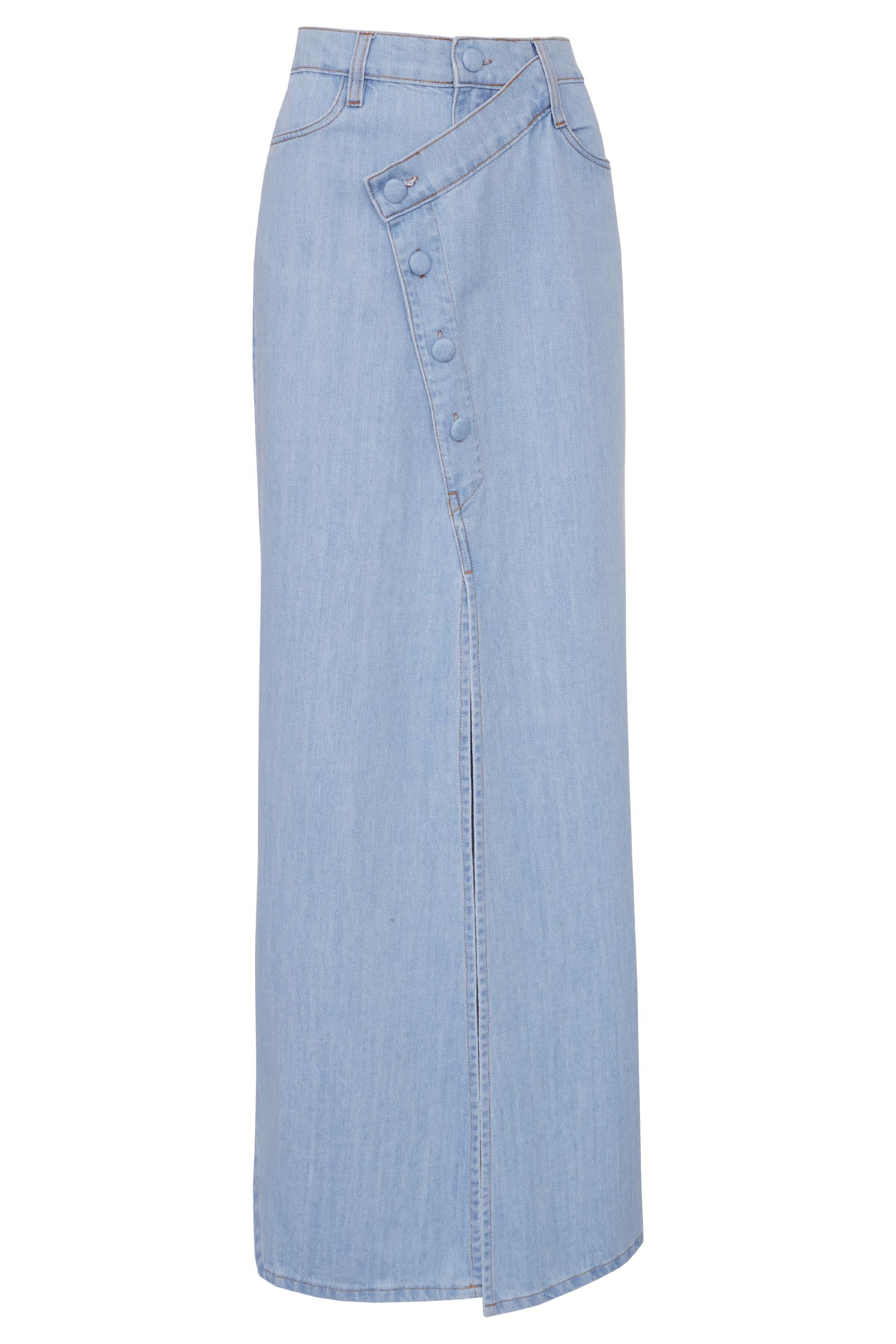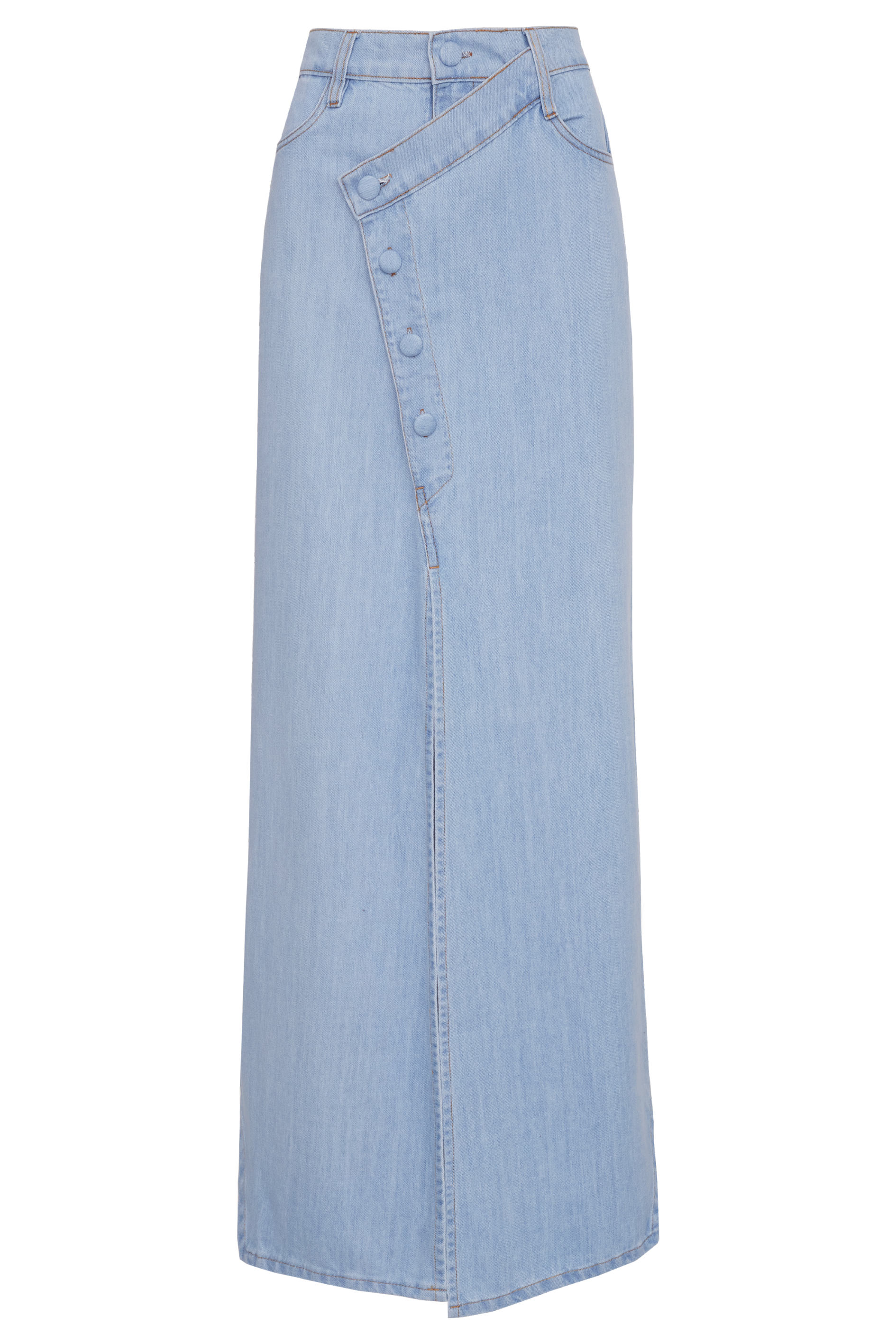 A Saia Nautillus NADRUZ é confeccionado em jeans 100% algodão. A peça possui formato justo ao corpo, acinturado e caimento levemente evasê, com cós deslocado e fechamento por botões encapados e zíper.