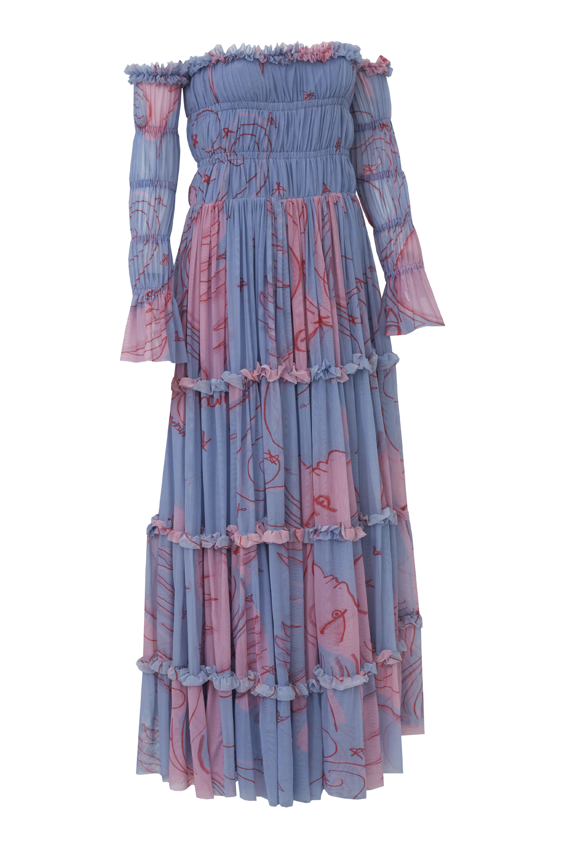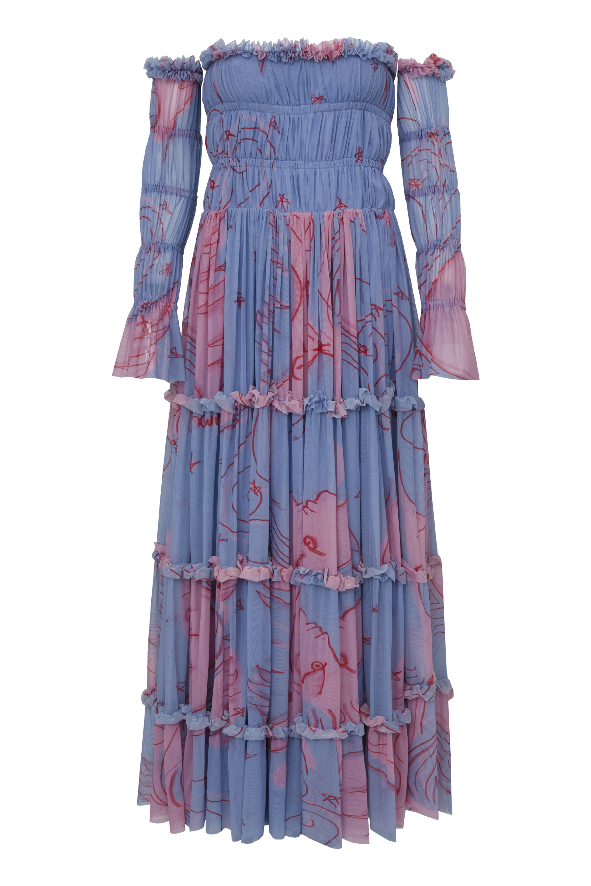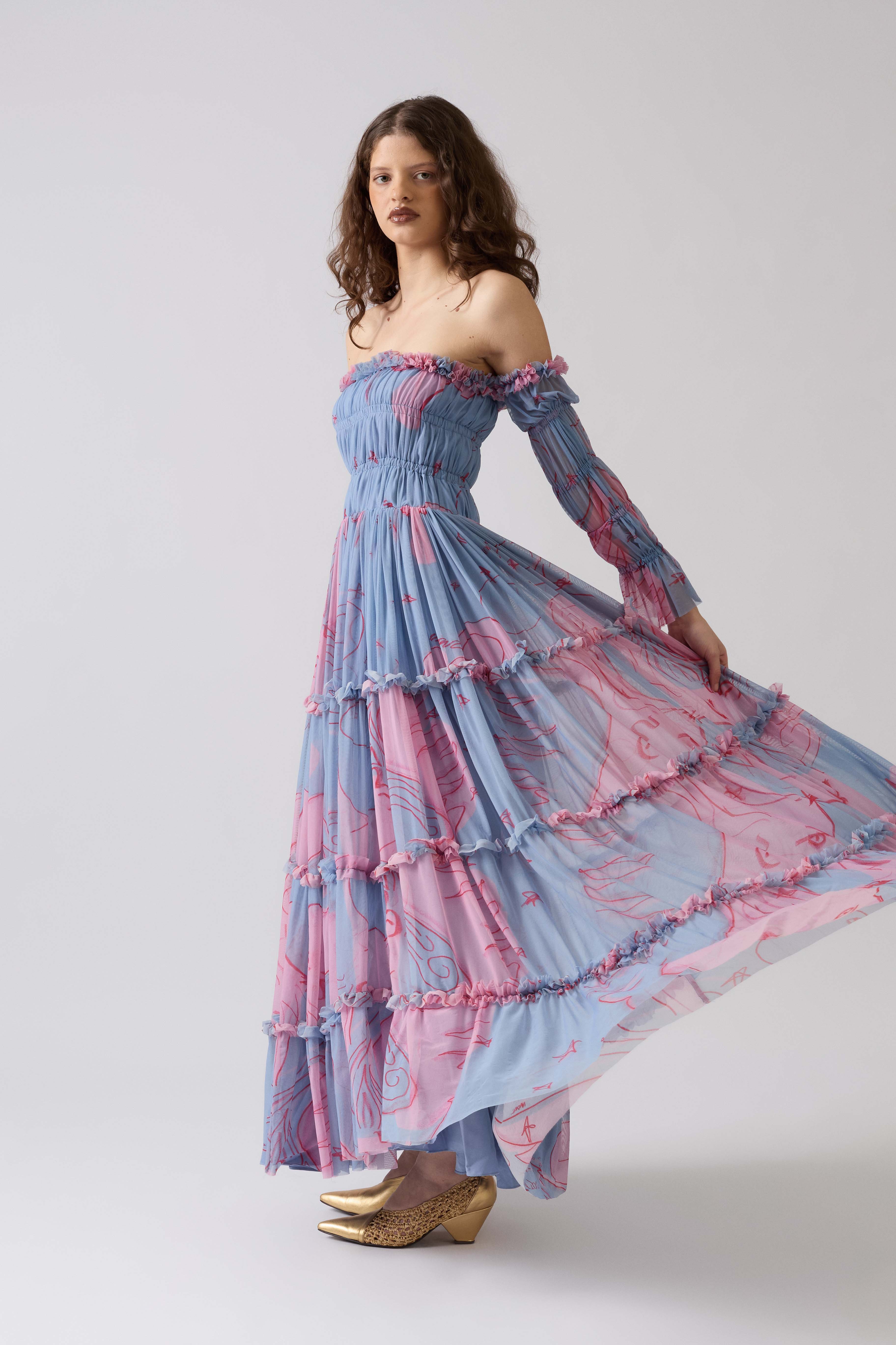 O Vestido Amelia NADRUZ é romântico e evocativo, todo construído em franzidos expressivos que conferem uma dimensão idílica à peça.